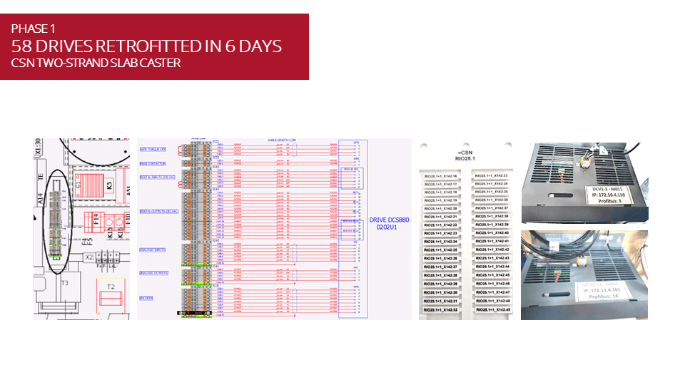 Before the new drives were installed, the PROFIBUS DP and Ethernet networks were tested during the scheduled weekly maintenance shutdowns. Russula provided training and an installation manual, containing connection drawings, to the CSN team. All the cables and modules of each of the 58 drives were color and code tagged to be able to identify network nodes and casting strands.