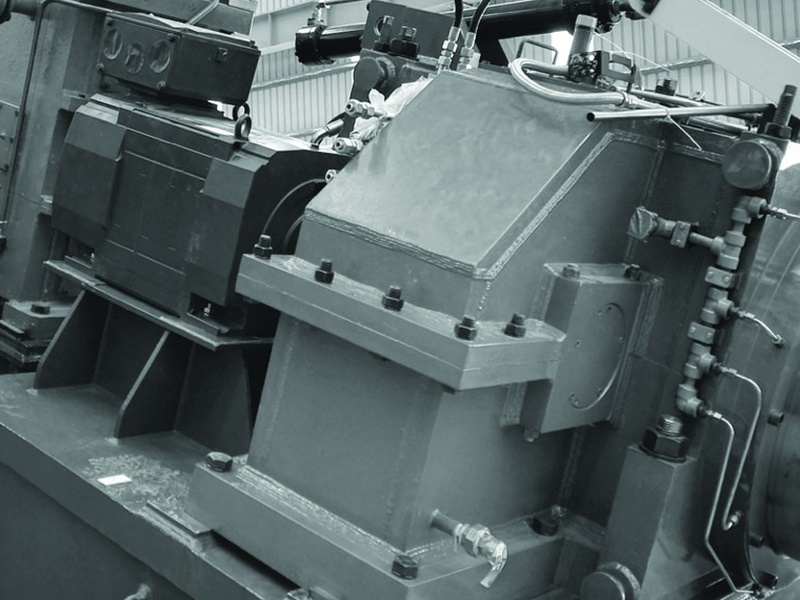 In the current Russula design, the centerline of the motor is parallel to the centerline of the laying head, as shown in the photo below. It sits on the same integrated base as the laying head itself, which creates a more compact, stable footprint. Because of this configuration, expensive spiral bevel gears in a typical laying head are eliminated; they are replaced with more affordable, helical gear sets.